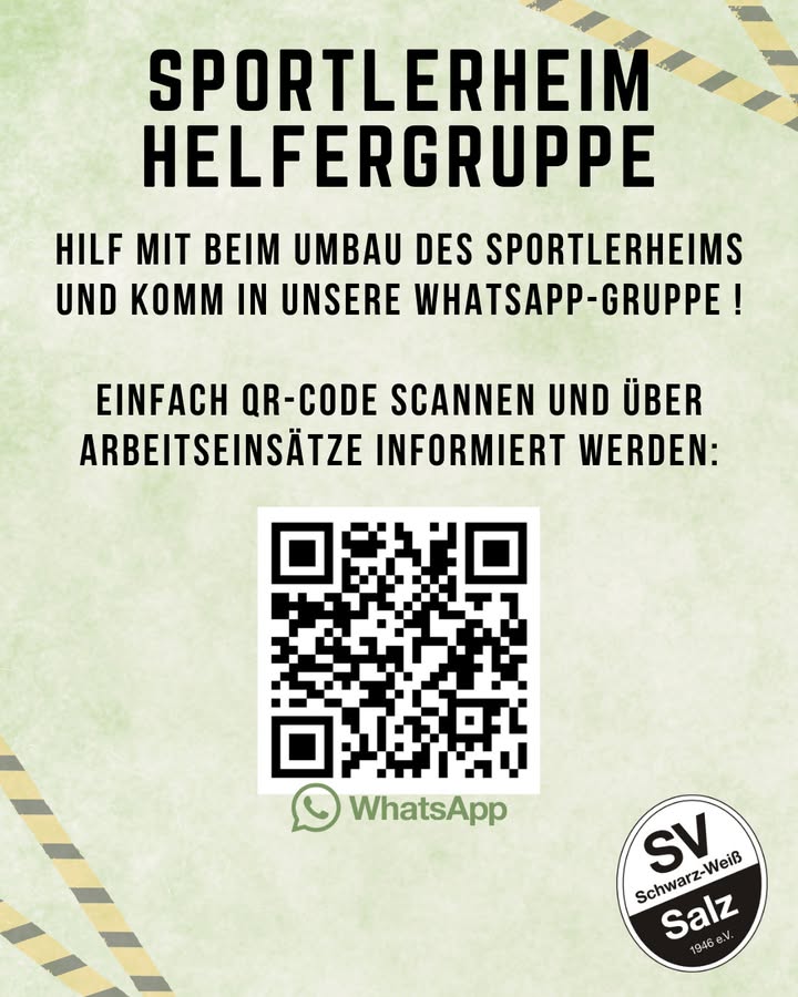 Mehr als 500 Arbeitsstunden durch Freunde und Mitglieder des Vereins sind bereits erfolgt. Um unser Ziel zu erreichen, dass das Bauprojekt im Sommer 2026 abgeschlossen werden kann, benötigen wir weiterhin und regelmäßig viele Helfer. In unserer WhatsApp-Helfergruppe informieren wir regelmäßig über den Baufortschritt und die anstehenden Termine der Arbeitseinsätze. Hier sind grundsätzlich alle Talente gefragt: von handwerklichen Aufgaben, über die Hilfe bei Planung und Organisation bis hin zur Erledigung von Besorgungsfahrten. Über den beigefügten QR-Code oder folgenden Link kann sich jeder Interessierte zur Aufnahme in die Gruppe anmelden: https://chat.whatsapp.com/HEFz0cPmtGH8srm26BHQVl